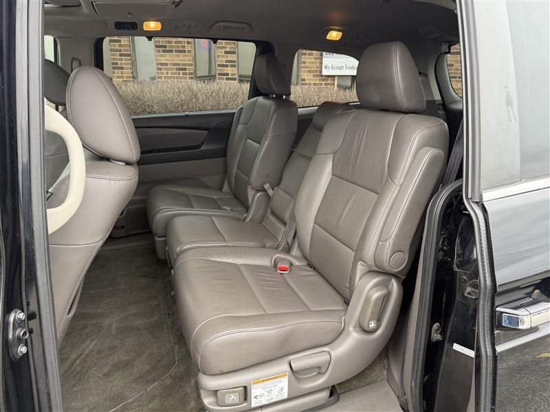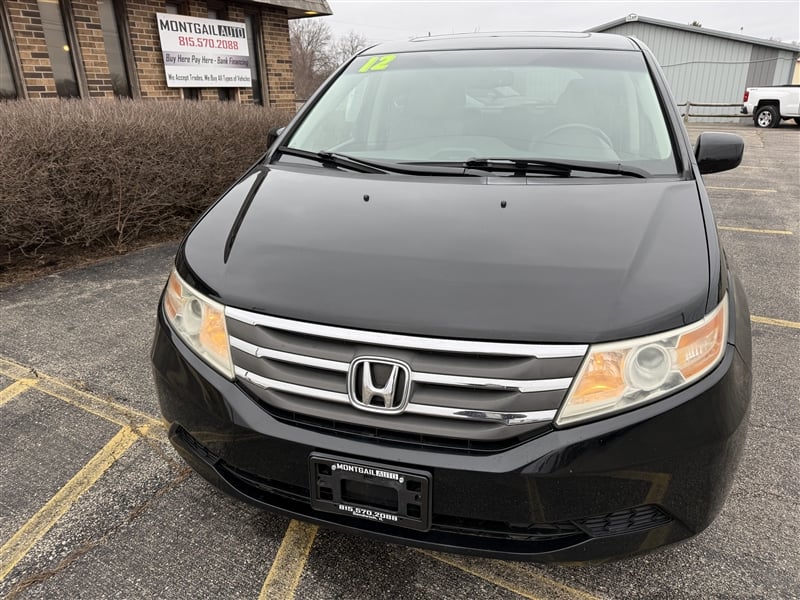 2012 Honda Odyssey EX-L / V6 Engine / FWD / Full-Power: windows, locks, brakes, steering, mirrors, seats, rear sliding doors, and liftgate / Power Moonroof / DVD System / Aloy wheels / Heated Leather seats / 2nd Row Captain chairs / 3rd Row Flip and fold / Backup Camera / Inspection Report, Carfax Report, and Service Reports available! Bank financing available!
