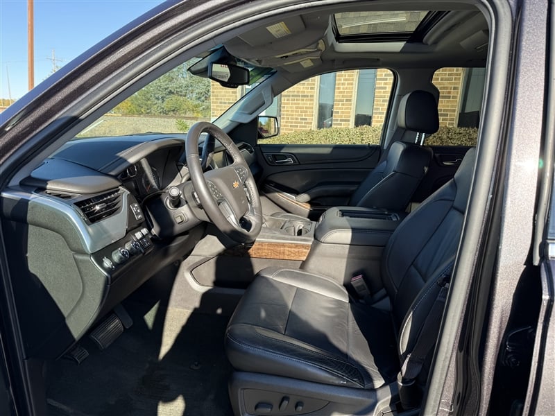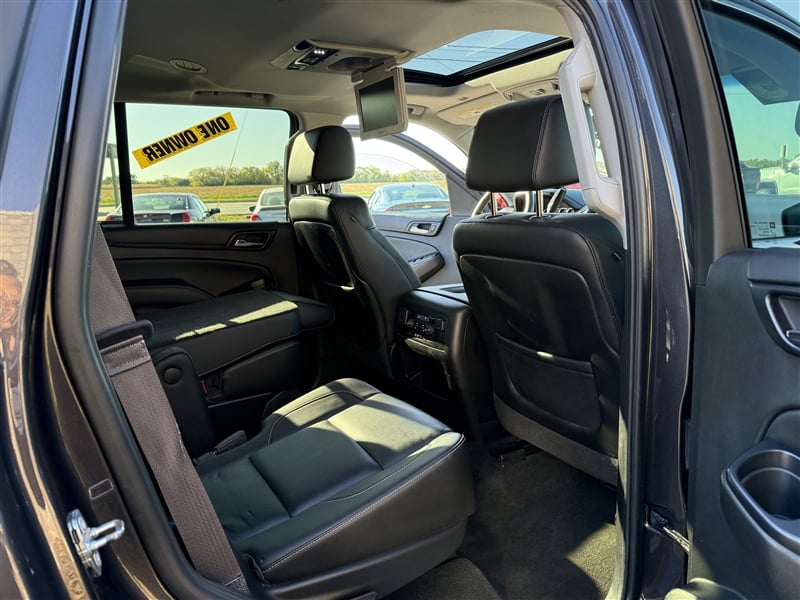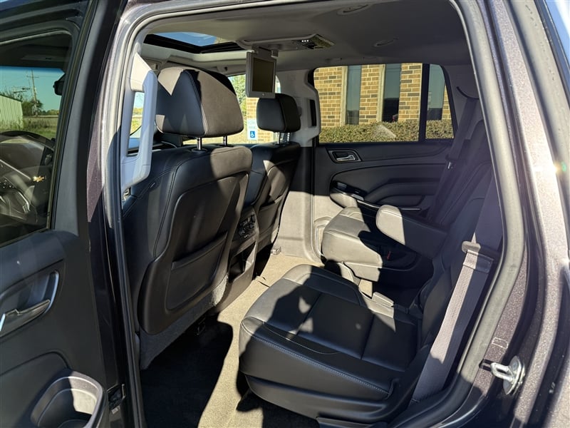 2015 Chevy Tahoe LT / ** 1-OWNER VEHICLE ** /5.3L V8 Engine / 4x4 / Full-Power: windows, locks, brakes, steering, mirrors, seats, telescopic steeering column, tailgate, and moonroof / Lane Departure Assist / Parking Sensors / Backup Camera / Heated Leather seats with Captian chairs in 2nd row, and 3rd row seating / Chrome wheels / Tow package / DVD System for rear passangers / Inspection Report, Carfax Report, and Service Repoorts / Bank Financing available!